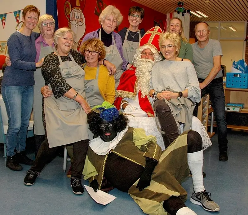 Wat een feest was het bij Samen Doen op 4 december jl.! Vanwege de verjaardag van Sinterklaas werd er eenmalig uitgeweken naar de maandagavond op de P.C. Hooftschool in Muiden. En dat is niet stilletjes aan onze gasten voorbij gegaan! Een gezonde maaltijd met een verrassende pepernotentiramisu – gemaakt door Dirk Jan – als dessert werd voorgeschoteld en er is van gesmuld. Maar niet alleen heeft iedereen van het eten en de gezellige liedjes genoten, het was ook lachen, gieren, brullen toen iedereen stuk voor stuk op de schoot van Sinterklaas geroepen werd. Een prachtig gedicht voorgedragen door Zwarte Piet maakte het compleet. Bij de koffie werden alle gasten getrakteerd op een heerlijke speculaaspop, geschonken door het C.O.F..